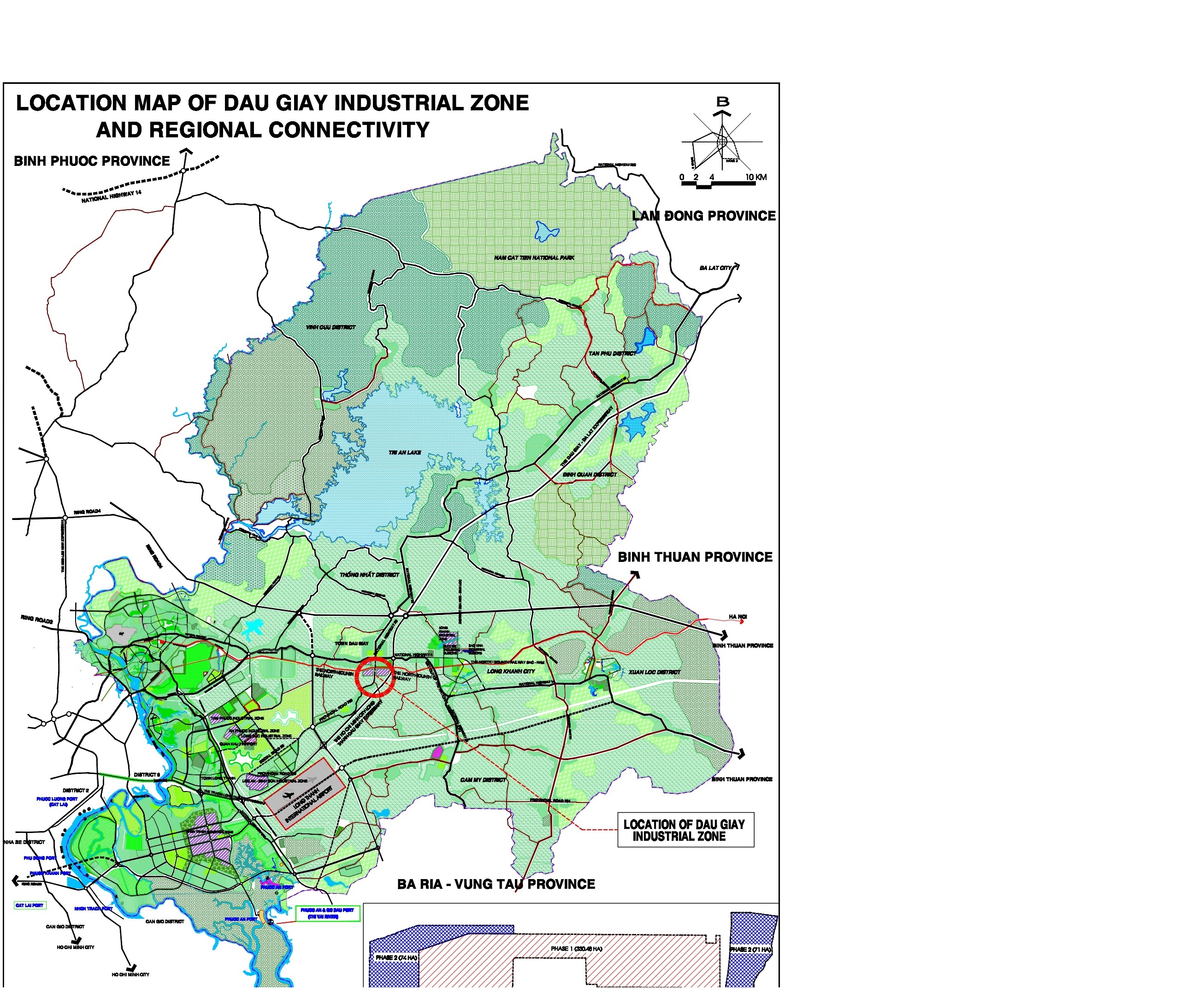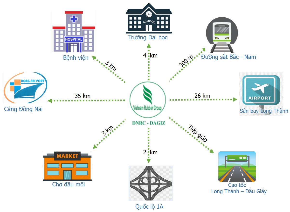 Phía Đông giáp đường cao tốc TP.HCM – Long Thành – Dầu Giây, thời gian ôtô đi từ Dầu Giây đến TP.HCM chỉ 50 phút.