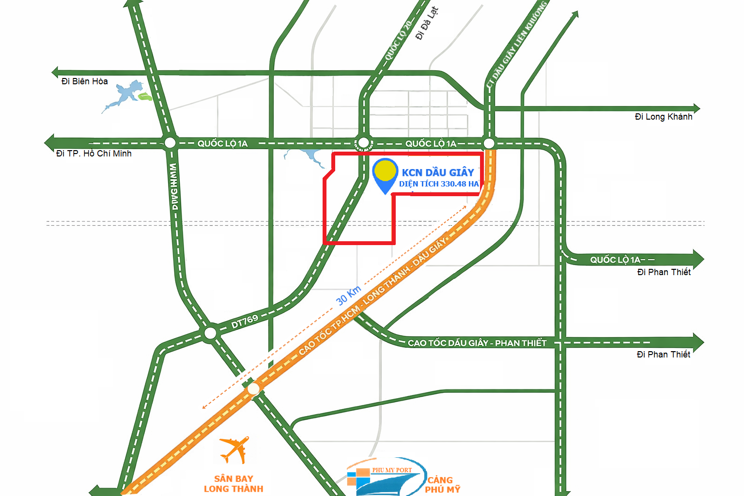 Sở hữu vị trí chiến lược tại trung tâm liên kết vùng Đông Nam Bộ – Tây Nguyên, nằm gần các tuyến giao thông huyết mạch như Quốc lộ 1A, Quốc lộ 20 và cao tốc TP.HCM – Long Thành – Dầu Giây, KCN Dầu Giây tạo điều kiện thuận lợi cho kết nối logistics, phân phối hàng hóa và thu hút nguồn lực chất lượng cao.
